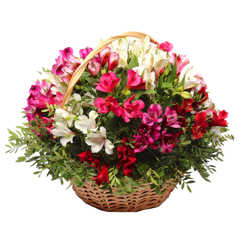 Цветы в корзинке «Краски альстромерий» с доставкой по г Ивантеевка: вы можете заказать букет в цветочном салоне «Флормания» по цене от 3190 руб.