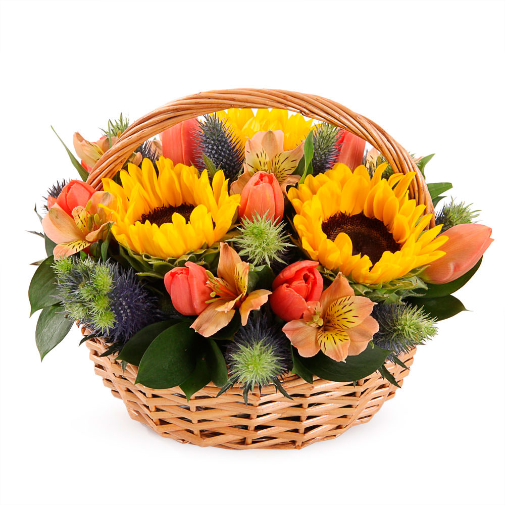 | Состав | Альстромерии, Подсолнухи, Тюльпаны, Эрингиум |